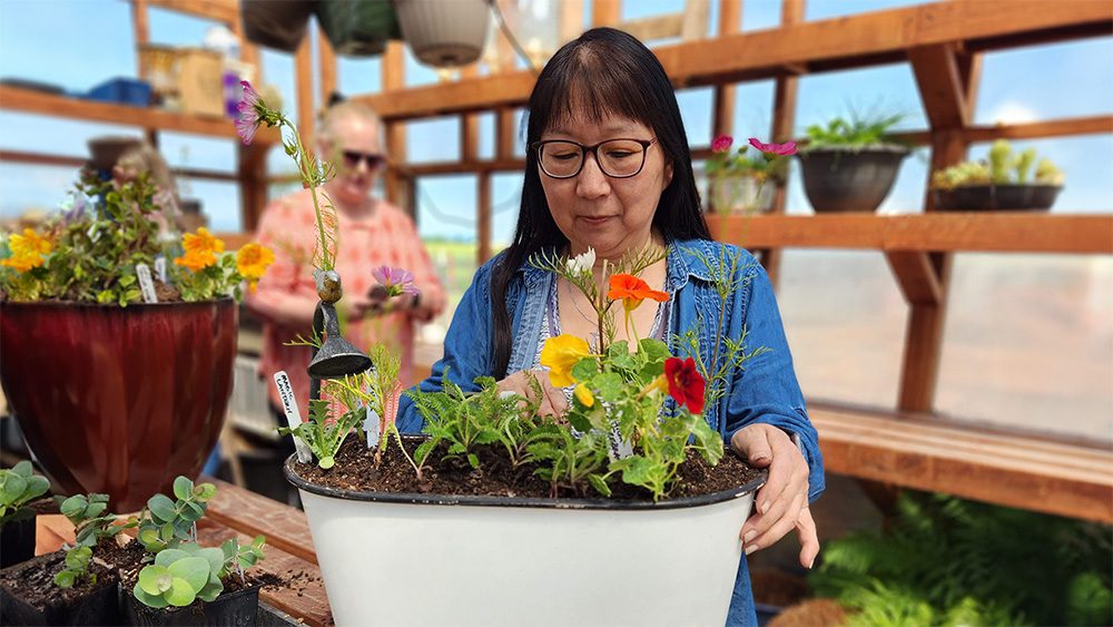Create a personalized patio container from a wide variety of flower starts. Soil and flower starts are provided but bring your own container or purchase one on-site.