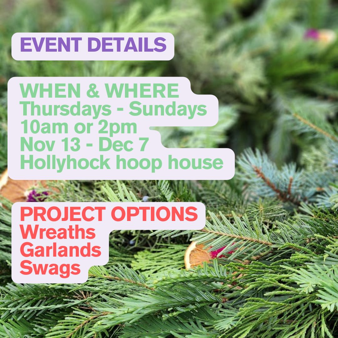 This event will be held in the Hollyhock Hoop House.